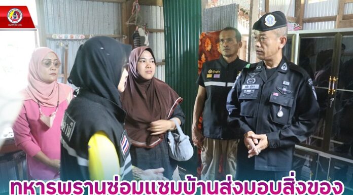 ทหารพรานซ่อมแซมบ้านส่งมอบสิ่งของ ต่อครอบครัวผู้ได้รับผลกระทบจากเหตุการณ์บังคับใช้กฎหมายในพื้นที่ ม.3 บ.ควนลาแม ต.นาเกตุ อ.โคกโพธิ์ จ.ปัตตานี