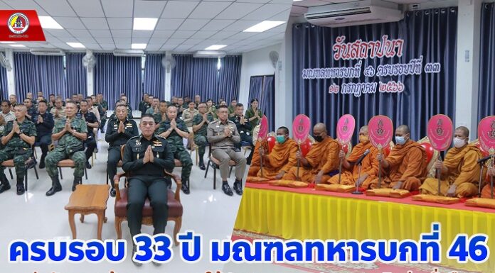 ครบรอบ 33 ปี มณฑลทหารบกที่ 46 ยึดมั่นปกป้องเทิดทูนสถาบัน และเป็นที่พึ่งให้ประชาชนในทุกสถานการณ์ มุ่งพัฒนา สร้างความผาสุกให้ประชาชน และประเทศชาติอย่างยั่งยืน