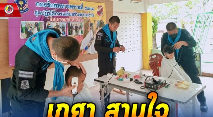 นอกจากนี้ หน่วยเฉพาะกิจกรมทหารพรานที่ 44 ยังได้นำช่างตัดผมของหน่วย ออกให้บริการตัดผมเคลื่อนที่ให้กับเด็กนักเรียน ตามโครงการ “เกศาสานใจ เพื่อนักเรียน และเยาวชนในพื้นที่”เพื่อเป็นการลดค่าใช้จ่ายให้กับผู้ปกครอง และเป็นการสร้างความเชื่อมั่นให้กับพี่น้องประชาชนในพื้นที่ ภายใต้ “สังคมการอยู่ร่วมกันของพี่น้องประชาชน กับเจ้าหน้าที่ทางภาครัฐ อย่างสันติสุข ซึ่งสร้างความสุข และสร้างรอยยิ้มให้กับคณะครู และนักเรียน ตลอดจนยังเป็นการพัฒนาเสริมสร้างความสัมพันธ์อันดี สร้างภาพลักษณ์ที่ดีของหน่วยอีกด้วย ทั้งนี้โครงการดังกล่าวเป็นนโยบายของกองทัพบกที่ให้หน่วยทหารทุกหน่วยของกองทัพบก เข้าไปช่วยเหลือประชาชนที่เดือดร้อนในทุกโอกาสตามศักยภาพของหน่วยที่สามารถปฏิบัติได้