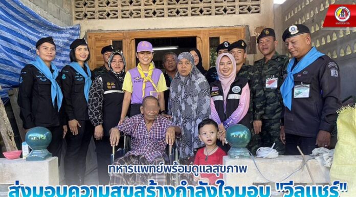 ทหารแพทย์พร้อมดูแลสุขภาพ ส่งมอบความสุขสร้างกำลังใจมอบ “วีลแชร์” ให้กับผู้ป่วยถึงที่ปลายด้ามขวาน