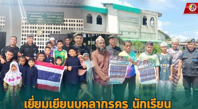 วันที่ 10 ธันวาคม 2566 เวลา 09.00 น. ณ มัสยิดอัลฟาลาห์ บ้านปาลอบาต๊ะ ตำบลลุโบะบายะ อำเภอยี่งอ จังหวัดนราธิวาส กองร้อยทหารพรานนาวิกโยธินที่ 7 หน่วยเฉพาะกิจทหารพรานนาวิกโยธิน กองทัพเรือ (ร้อย.ทพ.นย.7 ฉก.ทพ.นย.ทร.) เข้าพบปะพูดคุย เยี่ยมเยียนบุคลากรครู/นักเรียนศูนย์การศึกษาอิสลาม (ตาดีกา) เพื่อพัฒนาสัมพันธ์ เสริมสร้างความสัมพันธ์ที่ดีระหว่างกัน พร้อมทั้งมอบธงชาติผืนใหม่ทดแทนผืนเดิมที่ชำรุด และร่วมกันประดับธงชาติ เพื่อเป็นการปลูกฝัง “อุดมการณ์รักชาติ ศาสนา พระมหากษัตริย์” ให้นักเรียนมีใจรักการเป็นจิตอาสา ช่วยเหลือสังคม และชุมชน พร้อมทั้งมอบปฏิทิน ของกองอำนวยการรักษาความมั่นคงภายในภาค 4 ส่วนหน้า และแผ่นพับให้แก่บุคลากรครู โดยได้รับการต้อนรับจากบุคลากรครู/นักเรียนอย่างอบอุ่น
