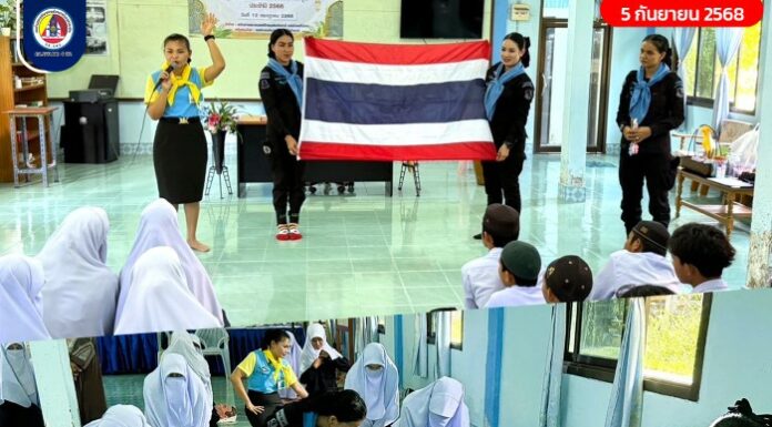 วันที่ 4 กันยายน 2568 เวลา 08.30 น. หน่วยเฉพาะกิจกรมทหารพรานที่ 44 สนับสนุนวิทยากรจิตอาสา 904 พร้อมด้วยชุดปฏิบัติการกิจการพลเรือน เข้าร่วมกิจกรรม “ฮูกุมปากัต” ธรรมนูญหมู่บ้าน 9 ดี ภายใต้การขับเคลื่อนของหน่วยเฉพาะกิจปัตตานี ในโครงการ สถานศึกษาปลอดภัย และกิจกรรม ชวนน้องมองอนาคต สมัครพลทหารออนไลน์ จัดขึ้นเพื่อมุ่งสร้างเสริมความรู้คู่คุณธรรมแก่คณะครูและนักเรียนระดับชั้นมัธยมศึกษาปีที่ 4–6