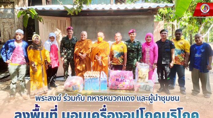 พระสงฆ์ ร่วมกับ ทหารหมวกแดง และผู้นำชุมชน ลงพื้นที่ จ.นราธิวาส มอบเครื่องอุปโภคบริโภค เพื่อช่วยเหลือบรรเทาความเดือดร้อนให้ประชาชนผู้ยากไร้