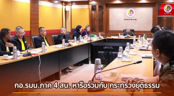 กอ.รมน.ภาค 4 สน. หารือร่วมกับ กระทรวงยุติธรรม จัดทำข้อมูลสนับสนุนแผนแก้ไขปัญหา จชต.