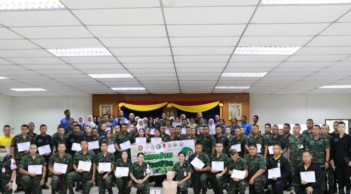 โรงพยาบาลค่ายอิงคยุทธบริหาร จัดโครงการ “หมออ่วม ช่วยชีวิต 2023 เสริมความรู้ สร้างทักษะการช่วยชีวิตเบื้องต้น แก่เจ้าหน้าทหาร อสม. กู้ชีพกู้ภัย ในพื้นที่ปัตตานี