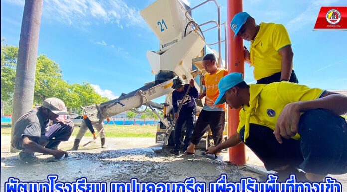พัฒนาโรงเรียน เทปูนคอนกรีต เพื่อปรับพื้นที่ทางเข้า และต่อเติมที่จอดรถบุคลากรครูภายในโรงเรียนบ้านแยะ อ.ยี่งอ จ.นราธิวาส