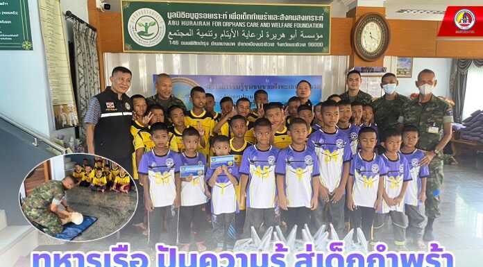 เมื่อวันที่ 21 พฤษภาคม 2566 เวลา 10.00 น. ที่สำนักงานมูลนิธิ ตำบลบางนาค อำเภอเมือง จังหวัดนราธิวาส หน่วยเฉพาะกิจนาวิกโยธินกองทัพเรือที่ 33 พร้อมด้วย เจ้าหน้าที่พยาบาล และเจ้าหน้าที่ศูนย์อำนวยการรักษาผลประโยชน์ของชาติทางทะเล (ศรชล.) ได้ลงพื้นที่จัดกิจกรรม สร้างการรับรู้ ด้านการช่วยเหลือผู้ประสบภัย “สาธิตการใช้เครื่องกระตุกหัวใจ AED และการปฐมพยาบาลเบื้องต้น CPR” โดยวิทยากรเจ้าหน้าที่พยาบาล ให้กับเด็กกำพร้าพื้นที่ชุมชนชายทะเล ที่ได้รับผลกระทบจากเหตุการณ์ความรุนแรงในพื้นที่จังหวัดชายแดนภาคใต้ ซึ่งอยู่ในความอุปการะของมูลนิธิอบูฮูรอยเราะห์เพื่อเด็กกำพร้าและสังคมสงเคราะห์ โดยมี นาวาเอก กาจ บุญวิทยา รองผู้อำนวยการรักษาผลประโยชน์ของชาติทางทะเล จังหวัดนราธิวาส เป็นประธานในกิจกรรม