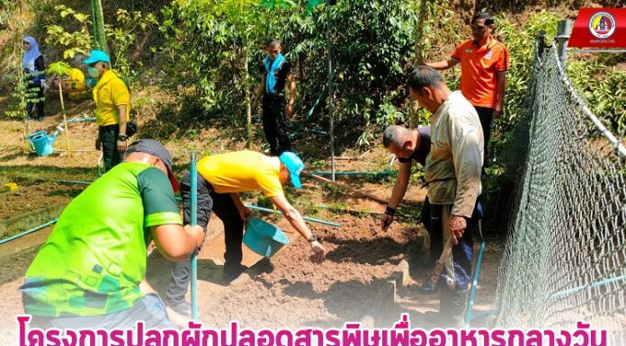 เมื่อวันที่ 1 พฤษภาคม 2566 ที่ โรงเรียนบ้านธารทิพย์ หมู่ที่ 6 ตำบลบันนังสตา อำเภอบันนังสตา จังหวัดยะลา หน่วยเฉพาะกิจกรมทหารพรานที่ 30 จัดกำลังพล ร่วมกับ ผู้นำหมู่บ้าน เจ้าหน้าที่โรงพยาบาลส่งเสริมสุขภาพตำบลบ้านบือซู และประชาชนในพื้นที่บ้านบือซู จัดกิจกรรมโครงการปลูกผักปลอดสารพิษเพื่ออาหารกลางวันน้อมนำหลักปรัชญาของเศรษฐกิจพอเพียง เพื่อให้นักเรียนได้รับประทานอาหารกลางวันที่มีคุณค่าทางโภชนาการ สะอาดและปลอดภัย โดยใช้ผลผลิตทางการเกษตรที่ผลิตขึ้นภายในโรงเรียนมาประกอบเป็นอาหาร เพื่อลดต้นทุนในการซื้อวัตถุดิบ ตามแผนงานการจัดการด้านอนามัยสิ่งแวดล้อมในโรงพยาบาลส่งเสริมสุขภาพตำบล ตามโครงการ GREEN & CLEAN Hospital ที่มุ่งส่งเสริมให้โรงพยาบาลส่งเสริมสุขภาพตำบลมีการดำเนินงานที่เป็น มิตรกับสิ่งแวดล้อม เป็นแหล่งเรียนรู้ด้านอนามัยสิ่งแวดล้อมสู่ชุมชน ตามนโยบายของกระทรวงสาธารณสุข