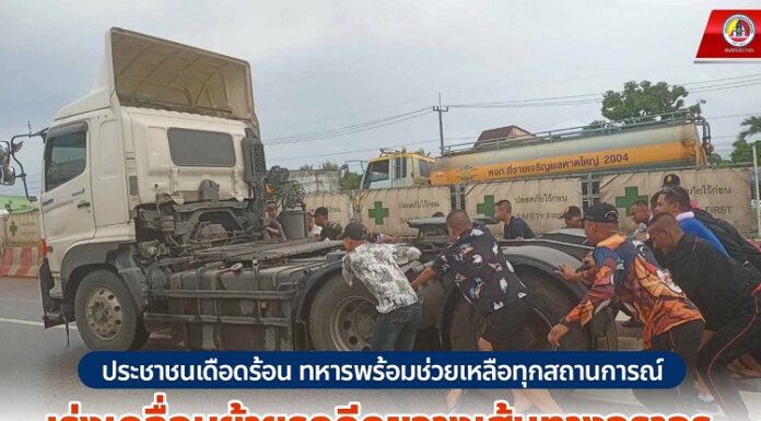 ประชาชนเดือดร้อน ทหารพร้อมช่วยเหลือทุกสถานการณ์ เร่งเคลื่อนย้ายรถกีดขวางเส้นทางจราจร ท่ามกลางสายฝน