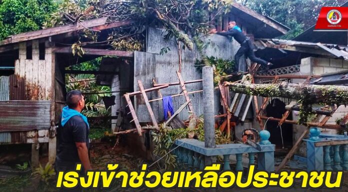 ทหารพราน 45 เร่งเข้าช่วยเหลือประชาชนหลังโดนพายุพัดต้นไม้ล้มทับบ้านได้รับความเสียหาย