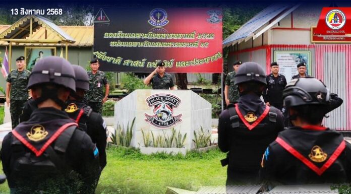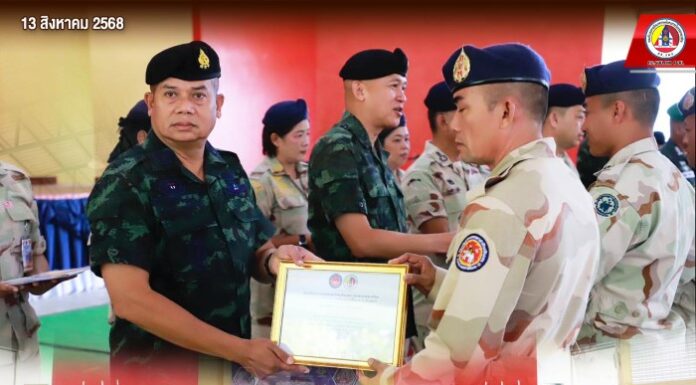 วันที่ 13 สิงหาคม 2568 เวลา 10.00 น. ณ ศูนย์ฝึกอบรมกองกำลังประจำถิ่นท่าสาป อำเภอเมือง จังหวัดยะลา พลโท ไพศาล หนูสังข์ แม่ทัพภาคที่ 4 / ผู้อำนวยการรักษาความมั่นคงภายในภาค 4 เป็นประธานพิธีปิดโครงการฝึกหลักสูตรผู้นำสมาชิกกองอาสารักษาดินแดน (อส.) จังหวัดชายแดนภาคใต้ ประจำปีงบประมาณ 2568 รุ่นที่ 19 พร้อมมอบประกาศนียบัตรแก่ผู้สำเร็จการฝึกจำนวน 120 นาย จากพื้นที่อำเภอจะนะ จังหวัดสงขลา, อำเภอสุไหงปาดี จังหวัดนราธิวาส และอำเภอกะพ้อ จังหวัดปัตตานี