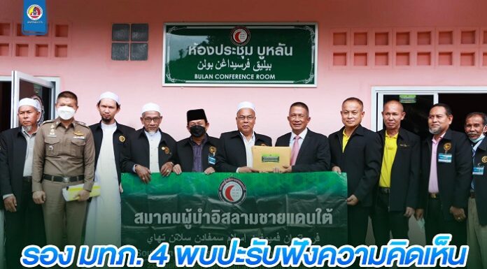 รองแม่ทัพภาคที่ 4 พบปะ รับฟังความคิดเห็น จากคณะกรรมการบริหาร สมาคมผู้นำอิสลามชายแดนใต้ เพื่อแสวงหาความร่วมมือและพัฒนาจังหวัดชายแดนภาคใต้ สู่สันติสุขอย่างยั่งยืน