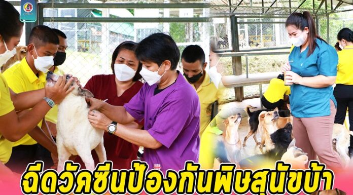 กรมทหารราบที่ 152 ร่วมกับมูลนิธิบ้านหมายิ้ม ฉีดวัคซีนป้องกันพิษสุนัขบ้า และตรวจสุขภาพสุนัข ตามโครงการ Love Dog ค่ายสิรินธร