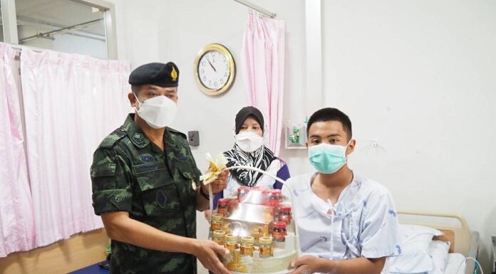 รอง ผบ.นรด. เยี่ยมและติดตามอาการเจ็บป่วยของนักศึกษาวิชาทหาร พร้อมมอบกระเช้าเป็นขวัญและกำลังใจ ณ โรงพยาบาลนราธิวาสราชนครินทร์