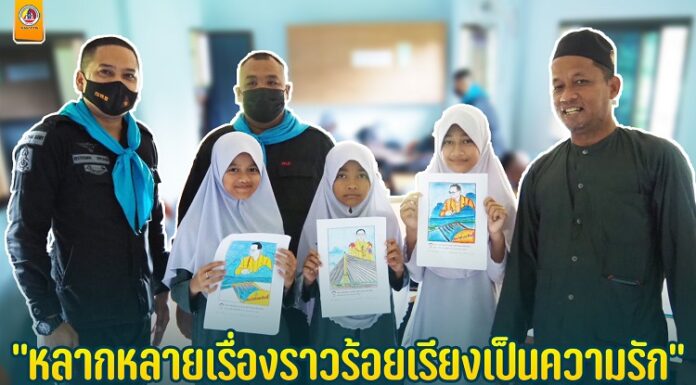 สำหรับกิจกรรม “หลากหลายเรื่องราวร้อยเรียงเป็นความรัก" จัดขึ้นเพื่อเป็นการส่งเสริมปลูกฝังในความรักและเทิดทูนสถาบันหลักของชาติ และน้อมรำลึกถึงพระมหากรุณาธิคุณที่มีต่อปวงชนชาวไทย โดยเจ้าหน้าที่ทหารพรานได้จัดหาอุปกรณ์เครื่องเขียนวาดภาพมากแจกจ่ายให้น้องๆ นักเรียนได้ร่วมกิจกรรม พร้อมทั้งยังได้นำขนมและเครื่องดื่มมามอบให้กับคณะครูและนักเรียน เพื่อเป็นการสร้างความสัมพันธ์อันดีต่อคนในชุมชนและเจ้าหน้าที่ของรัฐ