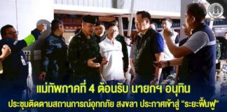 แม่ทัพภาคที่ 4 ต้อนรับ นายกฯ อนุทิน ประชุมติดตามสถานการณ์อุทกภัย สงขลา ประกาศเข้าสู่ “ระยะฟื้นฟู” สั่งจ่ายเยียวยาครัวเรือนละ 9,000...