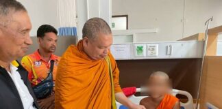 สมเด็จพระมหาวชิรมังคลาจารย์ เจ้าคณะใหญ่หนใต้ พร้อมที่ปรึกษา ผอ.รมน.ภาค 4 เยี่่ยมสามเณรบาดเจ็บจากเหตุกราดยิงที่สะบ้าย้อย