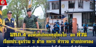 มทภ.4 ลงพื้นที่เกิดเหตุสุไหงโก-ลกด่วน เรียกประชุมร่วม 3 ฝ่าย ทหาร ตำรวจ ฝ่ายปกครอง ติดตามสถานการณ์ หลังเกิดเหตุรุนแรงในพื้นที่หลายจุดเมื่อคืนที่ผ่านมา ก่อนเยี่ยมผู้บาดเจ็บจากเหตุการณ์ความรุนแรงที่มีทั้งเจ้าหน้าที่และประชาชนผู้บริสุทธิ์