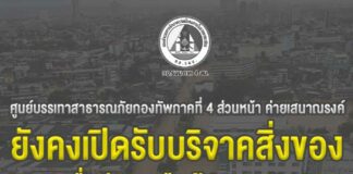 ศูนย์บรรเทาสาธารณภัยกองทัพภาคที่ 4 ส่วนหน้า ค่ายเสนาณรงค์ ยังคงเปิดรับบริจาคสิ่งของเพื่อช่วยเหลือผู้ประสบภัยในพื้นที่ อ.หาดใหญ่ จ.สงขลา อย่างต่อเนื่อง
