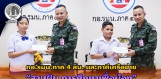 กอ.รมน.ภาค 4 สน. และภาคีเครือข่าย “สานฝัน การศึกษาเพื่อน้อง” มอบทุนการศึกษากว่า 1 แสน 9 หมื่นบาท...