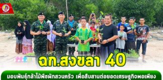 ฉก.สงขลา 40 มอบพันธุ์กล้าไม้พืชผักสวนครัว เพื่อสืบสานต่อยอดเศรษฐกิจพอเพียง ตามโครงการ “หน่วยเฉพาะกิจสงขลา 40 ปลูกต้นไม้ ในหัวใจคน”