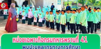 หน่วยเฉพาะกิจกรมทหารพรานที่ 41 พบปะบุคลากรทางการศึกษา พร้อมร่วมกิจกรรม เสาธง 5 นาที และร่วมเคารพธงชาติ