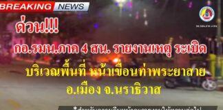 กอ.รมน.ภาค 4 สน. รายงานเหตุระเบิด บริเวณพื้นที่หน้าเขื่อนท่าพระยาสาย อ.เมือง จ.นราธิวาส