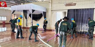 ร.151 พัน.1 ช่วยเหลือซ่อมแซมฟื้นฟูศาสนสถานที่ได้รับผลกระทบจากอุทกภัยหลังน้ำลด