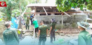 ทหารพราน 33 ซ่อมแซมฟื้นฟูบ้านเรือนประชาชนที่ได้รับผลกระทบจากน้ำท่วม หลังน้ำลด