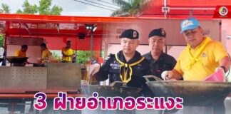 3 ฝ่ายอำเภอระแงะ เปิดครัวสนาม ประกอบอาหารปรุงสุกพร้อมรับประทาน เพื่อนำไปแจกจ่ายให้กับประชาชนที่ประสบอุทกภัยในพื้นที่