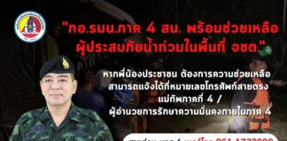 แม่ทัพภาคที่ 4 สั่งหน่วยทหารในพื้นที่ทุกหน่วย เร่งดำเนินการช่วยเหลือพี่น้องประชาชนที่เกิดอุทกภัยในพื้นที่โดยด่วนที่สุด