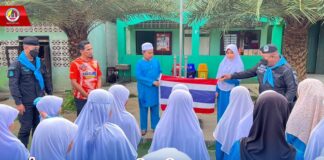 ทหารพราน 45 เปลี่ยนธงชาติผืนใหม่ให้กับศูนย์การศึกษาอิสลามประจำมัสยิด (ตาดีกา) ในพื้นที่อำเภอระแงะ จังหวัดนราธิวาส แทนผืนเก่าซึ่งชำรุด