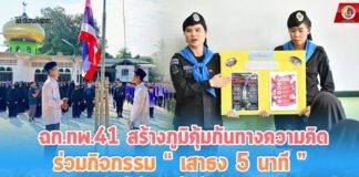 ฉก.ทพ.41 สร้างภูมิคุ้มกันทางความคิด ร่วมกิจกรรม “เสาธง 5 นาที” ปลูกฝังรักชาติ ต้านภัยยาเสพติด