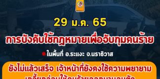 วันนี้ (29 ม.ค. 65) การบังคับใช้กฎหมายเพื่อจับกุมคนร้าย ในพื้นที่ อ.ระแงะ จ.นราธิวาส ยังไม่แล้วเสร็จ เจ้าหน้าที่ยังคงใช้ความพยายาม เกลี้ยกล่อมให้คนร้ายออกมามอบตัว...