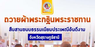 แม่ทัพภาคที่ 4 พร้อมด้วย พุทธศาสนิกชนจังหวัดสุราษฎร์ธานี ร่วมถวายผ้าพระกฐินพระราชทาน เพื่อน้อมนำไปถวายพระสงฆ์ ตลอดจนทำนุบำรุงพระพุทธศาสนาสืบสานขนบธรรมเนียมประเพณีอันดีงาม