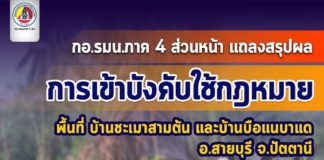 กอ.รมน.ภาค 4 ส่วนหน้า แถลงสรุปผลการเข้าบังคับใช้กฎหมายจับกุม และวิสามัญคนร้ายในพื้นที่ บ้านชะเมาสามต้น และบ้านบือแนบาแด อ.สายบุรี จ.ปัตตานี