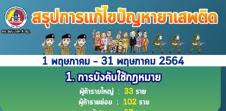 กองอำนวยการรักษาความมั่นคงภายในภาค 4 ส่วนหน้า สรุปผลการปฏิบัติงานการแก้ไขปัญหายาเสพติดในพื้นที่จังหวัดชายแดนภาคใต้ ของศูนย์ปฏิบัติการร่วมอำเภอ 37 อำเภอ (ศปร.อ. 37 อำเภอ) ตั้งแต่ 1 – 31 พฤษภาคม 2564 ดังนี้