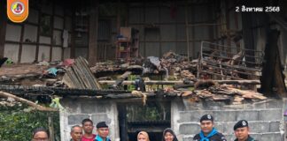 ทหารพรานลงพื้นที่ช่วยเหลือผู้ประสบเหตุไฟไหม้ในยะลา มอบสิ่งของและกำลังใจเพื่อฟื้นฟูชีวิต