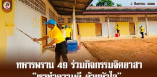 ทหารพราน 49 ร่วมกิจกรรมจิตอาสา “เราทำความดี ด้วยหัวใจ” ทาสีอาคารเรียนตาดีกา เสริมสร้างความร่วมมือรัฐ-ชุมชนเพื่อการศึกษา