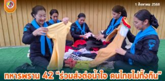 ทหารพราน 42 ร่วมส่งต่อน้ำใจ “คนไทยไม่ทิ้งกัน” คัดแยกเสื้อผ้าเครื่องนุ่งห่ม ช่วยเหลือผู้ประสบภัยภาคเหนือ-อีสาน
