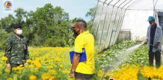 พลตรี ไพศาล หนูสังข์ ผู้บัญชาการกองพลทหารราบที่ 15 /ผู้อำนวยการศูนย์ประสานงานโครงการอันเนื่องมาจากพระราชดำริ พร้อมคณะ ลงพื้นเข้าตรวจเยี่ยมโครงการฟาร์มตัวอย่างบ้านลุตง ในสมเด็จพระนางเจ้าฯ พระบรมราชินีนาถ พระบรมราชชนนีพันปีหลวง ตำบลแม่ลาน อำเภอแม่ลาน จังหวัดปัตตานี ซึ่งอยู่ในความรับผิดชอบ ของสำนักงานพัฒนาที่ดินจังหวัดปัตตานี เพื่อศึกษา เรียนรู้ พร้อมทั้งบูรณาการ “การปลูกดาวเรือง...