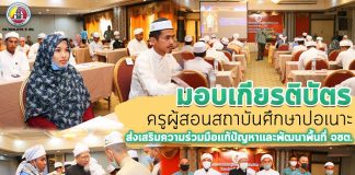 ศูนย์สันติวิธี มอบเกียรติบัตร แก่ ครูผู้สอนสถาบันศึกษาปอเนาะ ส่งเสริมความร่วมมือเเก้ปัญหาเเละพัฒนาพื้นที่ จชต.
