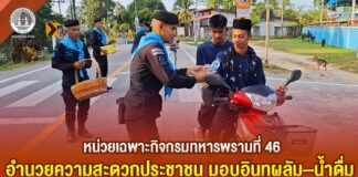 หน่วยเฉพาะกิจกรมทหารพรานที่ 46 อำนวยความสะดวกประชาชน มอบอินทผลัม–น้ำดื่ม ที่ด่านตรวจบาโงปะแต จ.นราธิวาส