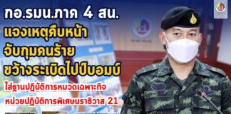 กอ.รมน.ภาค 4 ส่วนหน้า แจงเหตุคืบหน้าจับกุมคนร้ายขว้างระเบิดไปป์บอมบ์ใส่ฐานปฏิบัติการหมวดเฉพาะกิจ หน่วยปฏิบัติการพิเศษนราธิวาส 21