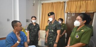 เยี่ยมให้กำลังใจกำลังพลที่ได้รับบาดเจ็บจากเหตุการณ์ลอบวางระเบิดรถยนต์บรรทุกทางทหาร บนเส้นทางสายเอเชีย ในพื้นที่ อ.ยะหริ่ง จ.ปัตตานี