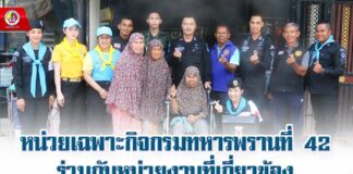 หน่วยเฉพาะกิจกรมทหารพรานที่ 42 ร่วมกับหน่วยงานที่เกี่ยวข้อง ออกหน่วยแพทย์เคลื่อนที่และมอบรถเข็นวีลแชร์แก่ผู้พิการในพื้นที่