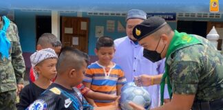 “ให้น้องได้เล่น ของขวัญจากพี่ทหาร” สานสัมพันธ์คณะครูและเยาวชนตาดีกากอเราะห์อัน จ.สงขลา พร้อมมอบธงชาติ อุปกรณ์การกีฬาให้ตาดีกา