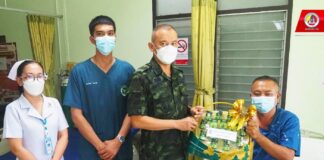 รอง มทภ.4 เยี่ยมให้กำลังใจผู้ได้รับบาดเจ็บจากเหตุคนร้ายลอบวางระเบิดเจ้าหน้าที่ในพื้นที่ อำเภอศรีสาคร จังหวัดนราธิวาส