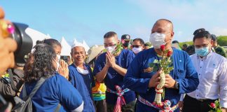 พล.ต.ศานติ ศกุนตนาค ผู้บัญชาการกองพลทหารราบที่ 5 ร่วมตรวจความพร้อมโรงพยาบาลสนามจังหวัดกระบี่ (2) ซึ่งใช้อาคารของกองพันทหารราบที่ 1 กรมทหารราบที่ 15 อ.คลองท่อม จ.กระบี่ พร้อมส่งมอบแก่ผู้ว่าราชการจังหวัดกระบี่ เพื่อใช้รองรับผู้ป่วยโควิด -19 ของ จ.กระบี่
