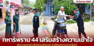 ทหารพราน 44 เสริมสร้างความเข้าใจ พัฒนาชุมชนผ่านกิจกรรมจิตอาสา บำเพ็ญสาธารณประโยชน์ร่วมกันระหว่างเจ้าหน้าที่ทหารพรานและโรงเรียนบ้านวังกะพ้อเพียรอนุสรณ์ จังหวัดปัตตานี